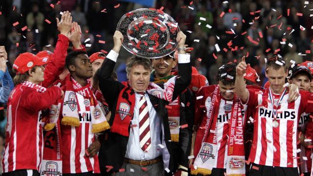 希丁克成名,是1988年欧冠。荷兰足球,在那个年代,标签是全能足球,招牌是阿贾克斯。希丁克却非常不荷兰,甚至是“反荷兰”。他带埃因霍温夺得1987-88赛季三冠,刷了多项纪录:赢球场次最少的冠军;自8强起凭客场进球晋级;并在决赛互射点球击败本菲卡。之前的纪录由布加勒斯特星创下,该队在1985-86赛季夺得欧冠,全程赢了4场,比埃因霍温多一场。星队也是在决赛耗完加时赌点球,罗马尼亚人只罚中两次,妙的是巴萨全部失手。埃因霍温是全部罚中,本菲卡最后一击,韦洛索——对,里斯本竞技那位中场球员米盖尔他爹,把球踢到范布鲁克伦的怀里。从那时起,希丁克带队,就是在“在哪里得到就在哪里失去”的循环中度过。